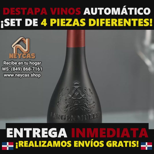 DESTAPADOR DE VINOS AUTOMÁTICO JUEGO DE 4 PIEZAS - SACA CORCHOS, DESTAPADOR, DISPENSADOR Y SELLADOR.