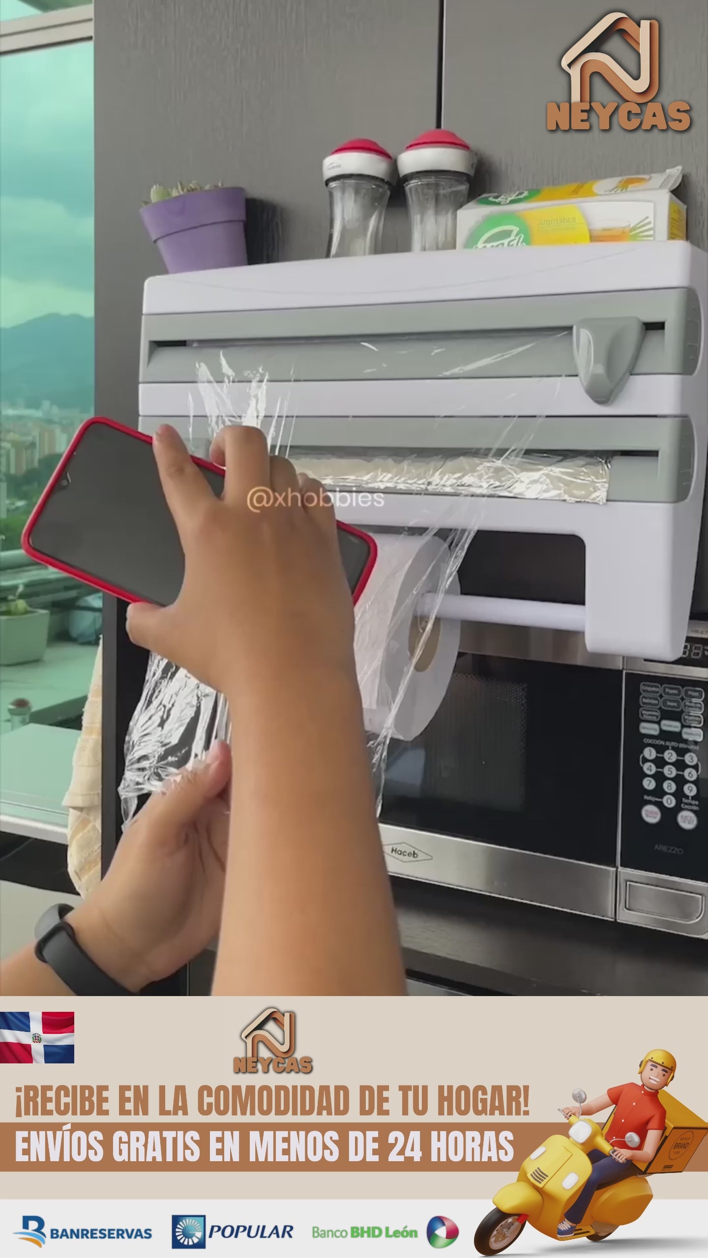 Los rollos de film transparente, papel de aluminio y toallas de papel ocupan mucho espacio y suelen estar fuera de alcance, lo que dificulta la preparación de tus comidas y la limpieza.