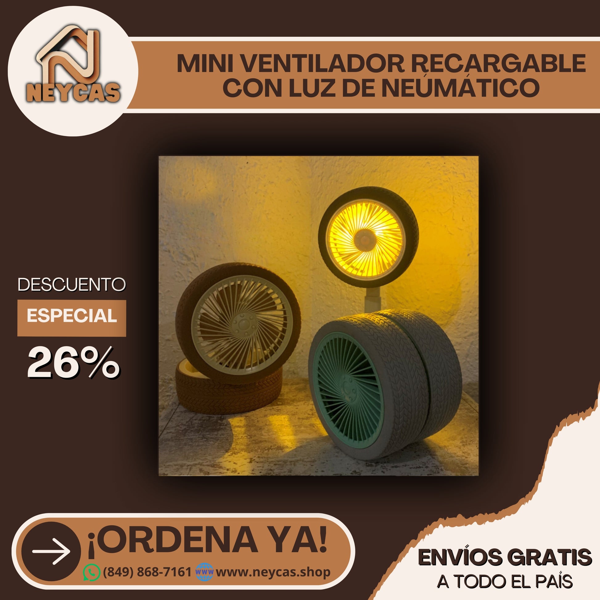 MINI VENTILADORES TIPO NEUMÁTICOS, INALAMBRICOS RECARGABLES DE 3 VELOCIDADES